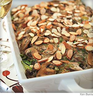 6. Bake the casserole until it is bubbling and the almonds are golden brown, about 30 minutes. Let stand for 10 minutes before serving.