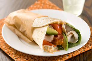 Save 90 calories and 10 grams of total fat, including 1.5 grams of saturated fat, per serving by preparing with Kraft Calorie-Wise Rancher's Choice Dressing, whole wheat tortillas, fat-free turkey breast and cooked turkey bacon.