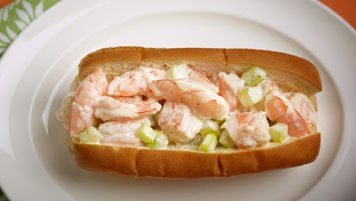 For each sandwich, open a roll, brush with butter and toast on a griddle until golden brown. Divide the shrimp salad between the rolls and serve immediately.