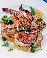 Barbecued Spiced Shrimp with Tomato Salad
