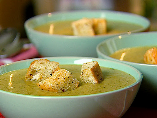 Simmer uncovered until broccoli is tender, about 15 minutes. Pour in cream. With an immersion blender, puree the soup. Add salt and pepper, to taste, and then replace the lid back on the pot. Serve hot with Homemade Croutons.