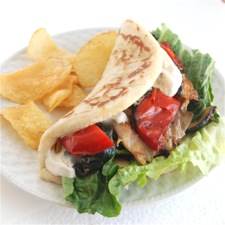 9) To make the filling: Grill the chicken and vegetables over medium coals until done (or sauté them in a skillet).