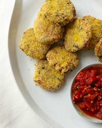 Polenta-Crusted Fish Cakes with Spicy Tomato Sauce