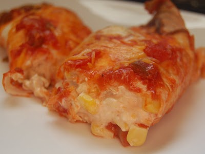 4. Spread about 1/2 cup salsa in the bottom of a baking dish. Place 1/3 to 1/2 cup filling on a tortilla, roll up and put in dish seam side down. Repeat process for remaining tortillas.