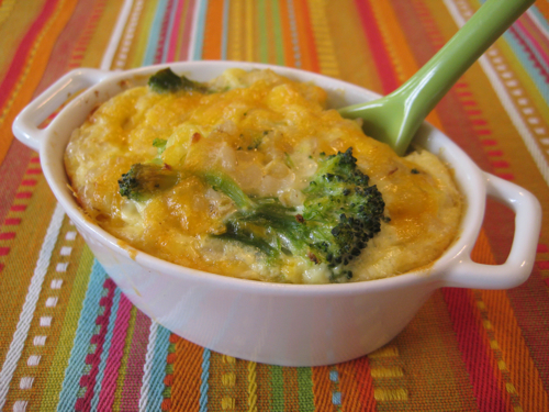 7. Bake for 50 minutes. Sprinkle with additional cheese (cheddar or Gouda is good.) Remove from the oven and allow to rest at room temperature for 20 minutes.