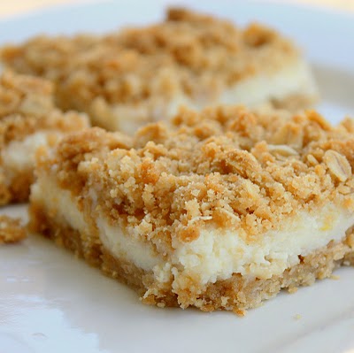 Mix butter and brown sugar until well combined. Sift together flour, salt, and baking powder. Add oats and flour to butter/sugar mixture and mix to combine. Press half of oat crumb mixture into the bottom of an 8 x 11 inch pan. You can use a 9 x 13 pan; it will just be thinner.