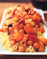 The word couscous refers to both the tiny semolina pearls themselves and to the dish of couscous topped with a hearty stew, just as other types of pasta are pasta whether dressed with a sauce or not. Here, butternut squash substitutes for the pumpkin more commonly found in North Africa