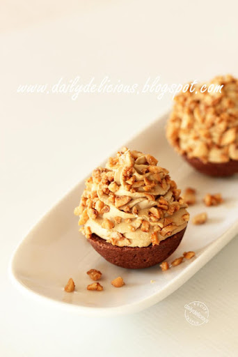 Whip the coffee flavor whipping cream until soft peaks form, put La Chantilly au café into a piping bag with star nozzle and pipe over the chocolate cream.