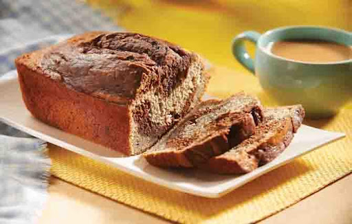.4Spoon the banana batter into the prepared loaf pan, then spoon the chocolate mixture on top. Using a table knife, swirl the two batters together.