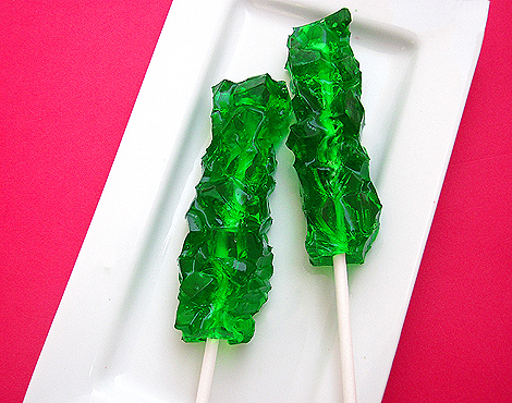 Remove pan and cut into 3×1/21inch strips, cutting sides in a jagged motion as you do so. Insert Popsicle stick through the middle.