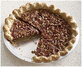 Tip: Pour the filling over the pecans in a slow, spiral motion; if you go too fast, the pecans may move, leaving gaps in the finished pie.