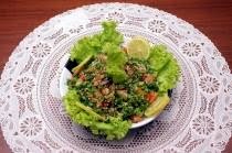 Tabouleh is a salad like no other. Made with fresh veggies, olive oil and spices, it can be eaten in pita bread, scooped onto pita bread, or traditionally with a fork. In the Middle East, fresh grape leaves are used as a scoop. Tabouleh can be made with a variety of veggies according to taste. You can add carrots, cucumbers, red or green onions. I always suggest to taste as you go along in preparation. Yo can also add romaine lettuce for a fuller salad.