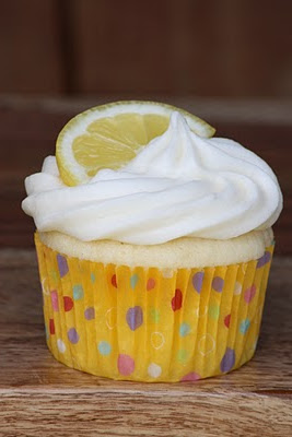 4. Assemble the cupcakes. Cut a hole into the center of each cupcake and fill each cavity with the lemon curd. Top the cupcakes with the cream cheese limoncello frosting and garnish with lemons.