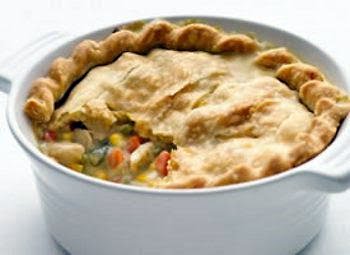 3. Stir in soup and sour cream. Add chicken and cooked vegetables; mix well. Cook, stirring frequently, until thoroughly heated. Pour into ungreased 2-quart round casserole. Unroll pie crust; place over hot filling. Seal edge and flute as desired. Cut slits in several places in crust.