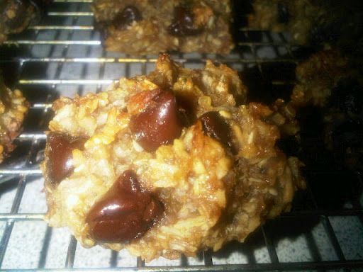 Pre-heat oven to 375 degrees. In a large mixing bowl, mash bananas in bowl with a fork and add vanilla, almond butter and coconut sugar. Add quinoa, oatmeal, coconut and pinch of salt. Mix until well combined. Stir in chocolate chips. Line baking sheet with parchment paper and drop batter on to cooking sheet. Bake for 25-30 minutes. Remove from oven and let cool.