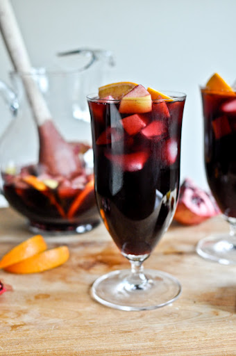 Place in the fridge for about 1 hour before serving. Taste to determine if you’d like more sugar, and if so – add it! Spoon some of the fruit into glasses before pouring, then add ice and sangria on top.
