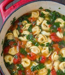 The cheesy tortellini in this soup paired with an abundance of fresh Roma tomatoes, fresh spinach and fresh garlic makes for a perfectly filling and unforgettable soup. If you have a garden with the listed ingredients, then how lucky are you? Now that I have a yard I can’t wait to plant a garden next year! Whenever I have had a garden, that was always one of my favorite things, to be able to go out any time of day and pick some fresh fruit and veggies to cookie with or eat raw straight from the vine. It really doesn’t get any better!