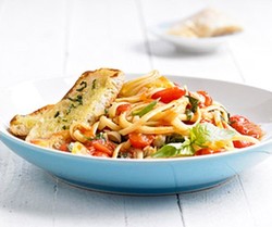 Grilled chicken or grilled italian sausages make a perfect accompaniment. And of course don't forget the garlic toast or good crusty bread.
