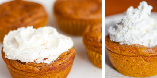 Mix the pumpkin, sugar, brown sugar, eggs, vanilla extract and milk. Add the flour, pumpkin spice, salt, baking powder and baking soda to the mixture. Fill each muffin cup with 1/3 cup of the mixture. Bake for twenty minutes and let cool for twenty minutes. Remove cupcakes from pan and chill in the fridge for 30 minutes. Top with whipped cream and sprinkle more pumpkin pie spice on top and serve. Makes 12 cupcakes.