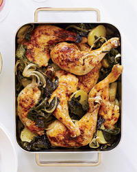 For this one-pan dish, Grace Parisi roasts chicken legs on a bed of potatoes and kale so the meaty juices keep the vegetables moist.