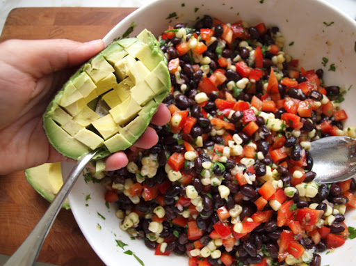 Black Bean Salad with Corn, Red Peppers and Avocado in a Lime-Cilantro Vinaigrette