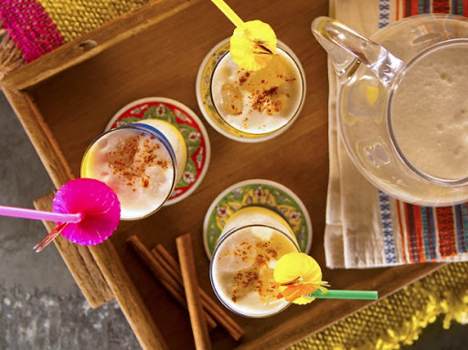 Working in batches, if necessary, carefully transfer the mixture to a blender and puree until smooth. Pour into a pitcher. Stir in the sugar and add enough water to make a total of 8 cups. Chill. Serve in tall glasses over ice. Garnish with a sprinkle of cinnamon.