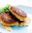 Pick through crabmeat, removing all shells but being careful not to break up the large lumps too much. In a food processor, grind codfish until pureed. Add 1/2 cup of heavy cream and puree until incorporated. Then add more cream if needed. The mixture should be smooth and shiny, yet firm enough to hold its shape. Place this mousse in a metal bowl and add the other ingredients, except for the olive oil. Take a small portion of the crab−cake mixture and saute in hot olive oil until golden brown. Taste to adjust seasoning. Form the rest of the crab cakes and saute in hot olive oil until golden on both sides. Finish by baking in a 450−degree oven for 4 to 5 minutes. Serves six to eight.