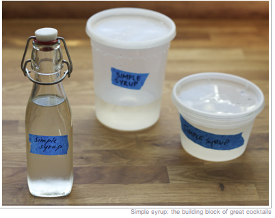 The combination of one part granulated white cane sugar to one part water (e.g, one cup of sugar with one cup of water), heated on the stovetop over low heat until the sugar dissolves and then cooled, yields a viscous sweetener that can be used in everything from iced tea to lemonade to cocktails.