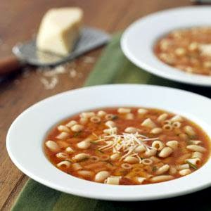 Simmer garlic and celery in olive oil. Add all other ingredients (except pasta)cover and simmer for about 1/2 hour. Serve pasta separately putting on bottom of bowl and then ladling hot soup over it. Serve with parmesan and crusty garlic bread.