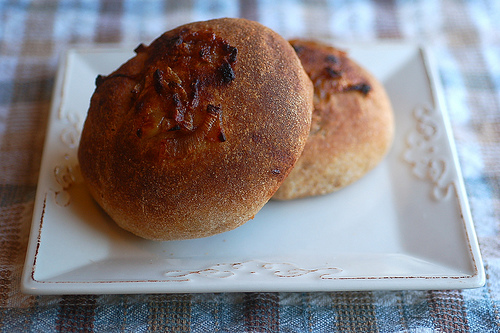 it is a completely whole wheat roll that is soft, has a nice toasty crust and is filled with sweet shallots, accented with hints of pepper, cinnamon and cumin.
