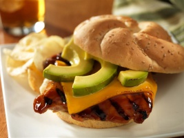 Brush Teriyaki Baste & Glaze on each thigh, top with slices of cheese and avocado. Place under the broiler for about 1 minute, until cheese is melted; serve on buns. For preparation all on the grill brush Teriyaki Baste & Glaze on each thigh, top with slices of cheese. Cover grill for about 1 minute or until cheese is melted. Place chicken on bottom half of the sandwich buns, top with avocado slices and bun top; serve.