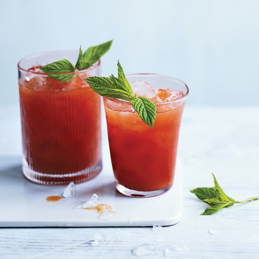 In a cocktail shaker, combine cup of the tomato water with the tomato juice, vodka, lemon juice, dill pickle juice, horseradish, pepper, Worcestershire sauce and Tabasco. Stir and pour into 2 ice-filled glasses. Garnish with herb sprigs and serve.