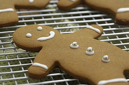 HEAT oven to 350°F. Roll out dough on lightly floured surface to 1/4-inch thickness; cut into gingerbread shapes with 4-inch cookie cutter, rerolling trimmings. Place, 2 INCHES APART, on baking sheets sprayed with cooking spray or parchment paper.
