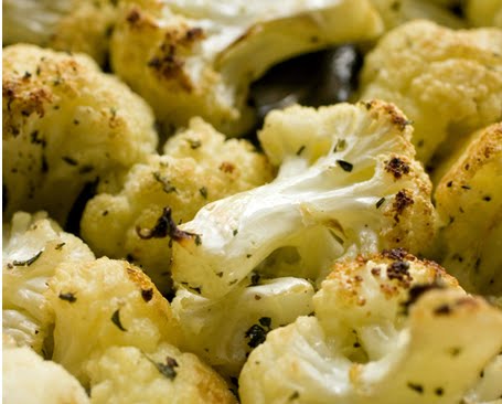 Put cauliflower in 9 x 13 casserole. Pour the wine and broth into the dish and drizzle with olive oil. Sprinkle with the oregano and salt and pepper to taste. Scatter the garlic slivers all over. cover the pan with foil and bake at 400 until tender - about 30 minutes.