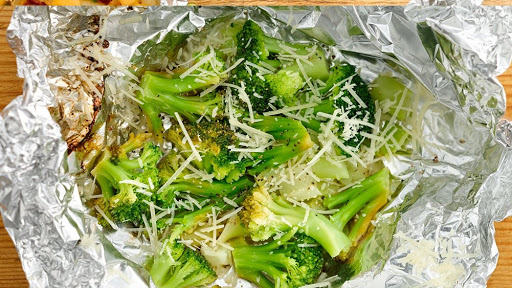 Place foil packets on grill over indirect heat. Cover grill; cook 15 to 25 minutes or until broccoli is heated through. Carefully open foil packs, and sprinkle broccoli with Parmesan cheese. Serve immediately.