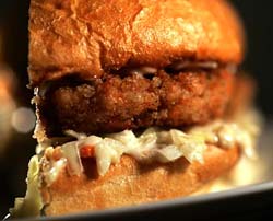 Prepare the burgers: Brush the insides of each toasted bun with tartar sauce, and spoon a little coleslaw on the base of the bun. Place a burger on the slaw, then the bun top. Serve immediately.