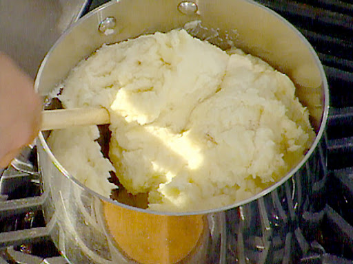 Remove the potatoes from the heat and drain off the water. Mash and add the garlic-cream mixture and Parmesan; stir to combine. Let stand for 5 minutes so that mixture thickens and then serve.