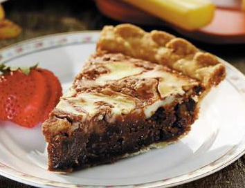 Dollop cream cheese mixture on top of filling; swirl with tip of a knife to marbleize.
