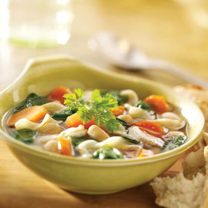 Change up your traditional chicken soup by adding delicious white kidney beans. It is also a great way to use up cooked chicken. —