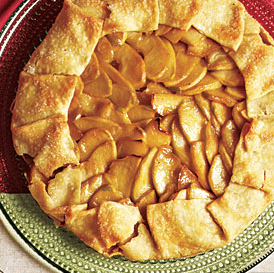 3. Place the dough on a piece of parchment paper. Roll dough into a 14-inch circle. Place dough and parchment paper on a baking sheet. Arrange cooled apples in center of dough, leaving a 2-inch border. Fold the edges of dough toward center, pressing gently to seal (dough will only partially cover the apple mixture). Brush dough with 1 teaspoon ice water, and sprinkle evenly with 1 teaspoon granulated sugar. Bake the tart at 400° for 45 minutes or until golden brown.