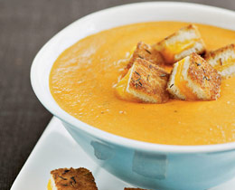 Ladle the soup into bowls and garnish with Grilled-Cheese Croutons.