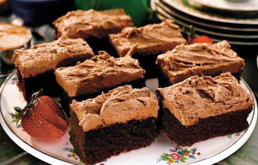 For frosting, combine remaining peanut butter, remaining butter and chocolate in a large bowl and beat with an electric mixer set at high speed until light and fluffy.