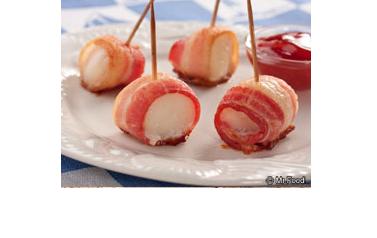 5.Dip bacon-wrapped scallops in sauce and serve with remaining sauce.