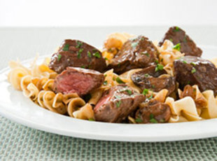5. Nestle steak pieces into mushroom and onion mixture and add any accumulated juices to skillet. Reduce heat to medium-low and simmer until steak registers 130 degrees on instant-read thermometer, 3 to 5 minutes, turning beef over several times. Season with salt and pepper, sprinkle with parsley, and serve.