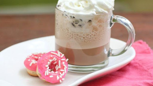 In blender, place coffee, 1 cup milk, the crème de cacao, coffee liquor, vodka, chocolate syrup and ice. Cover; blend on high speed until frothy. Pour into 4 glasses; top each with whipped cream and miniature chocolate chips.