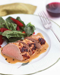 Milk-Braised Pork Tenderloin with Spinach and Strawberry Salad