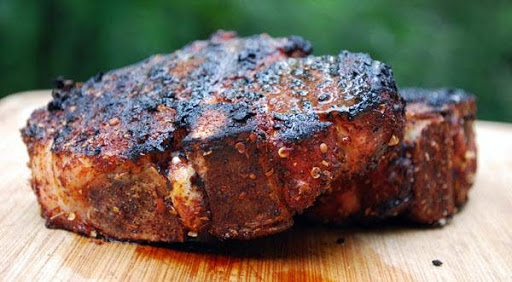 Grill over direct-high heat about 3-4 minutes on each side, or until a dark crust forms. After both sides are browned, move chops to the side of the grill (over indirect heat) and continue cooking, grill covered, 10-12 minutes (depending on thickness).