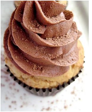 10.Pipe onto cooled cupcakes and dust with cocoa powder.