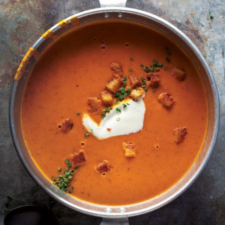 - Crème fraîche, croutons, and finely chopped chives, to garnish