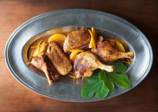 This spin on the classic prepa- ration makes efficient use of a whole duck by breaking the meat into six pieces and making a stock with the remaining carcass. Have your butcher separate the breasts, wings, and legs for you, or click here for step-by-step instructions.
